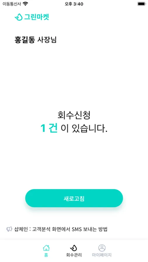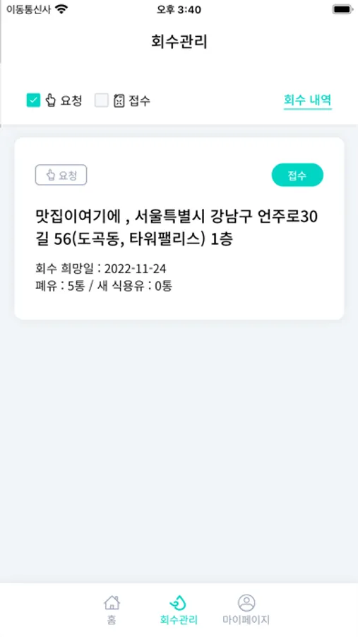 매장에서 사용한 식용유에 대한 수거 요청을 확인하고,