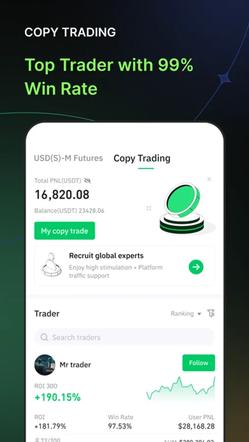 With CoinTR's one-click copy trade function, users will not need to open and close positions manually. They can follow traders to trade futures automatically without the need to keep an eye on the market, and share the strategy profits of excellent traders. Discover the Best Traders Around the World.