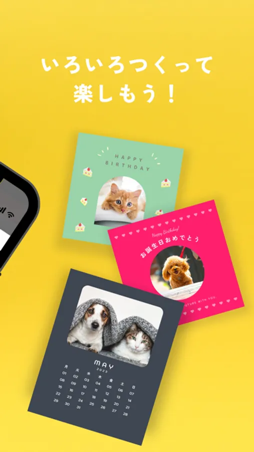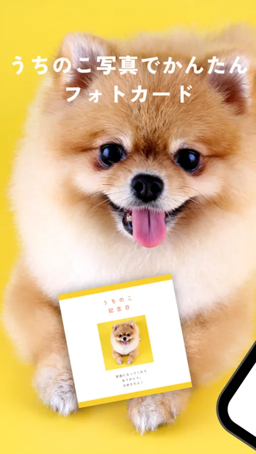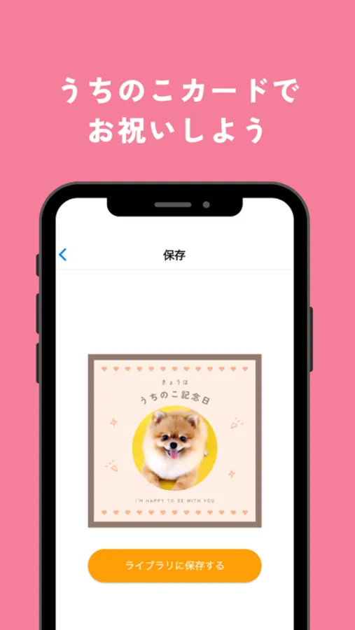 好きなデザインでうちのこカードをつくって家族や友人、SNSなどにシェアできます。