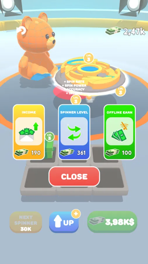 In Spinner Assembly, you can upgrade every pieces of your spinner and earn more money!