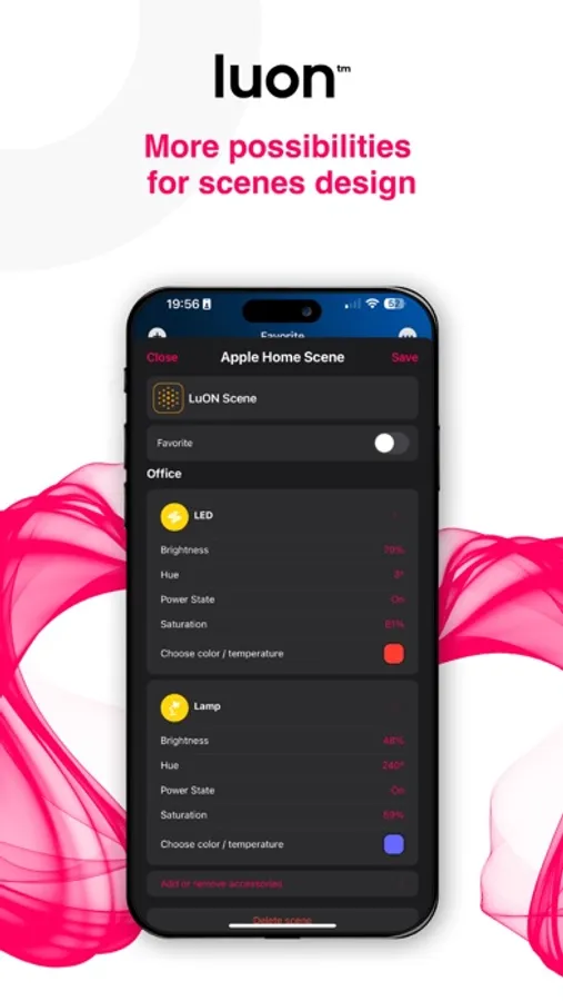 The LuHome app takes Apple Home scenes to the next level, offering much more possibilities to adjust the scenes to your needs. Experiment with any of the characteristics, combine them and create intelligent scenes that perfectly fit into your everyday life. Harness the full potential of Apple Home and enjoy incredible flexibility in managing your smart home.