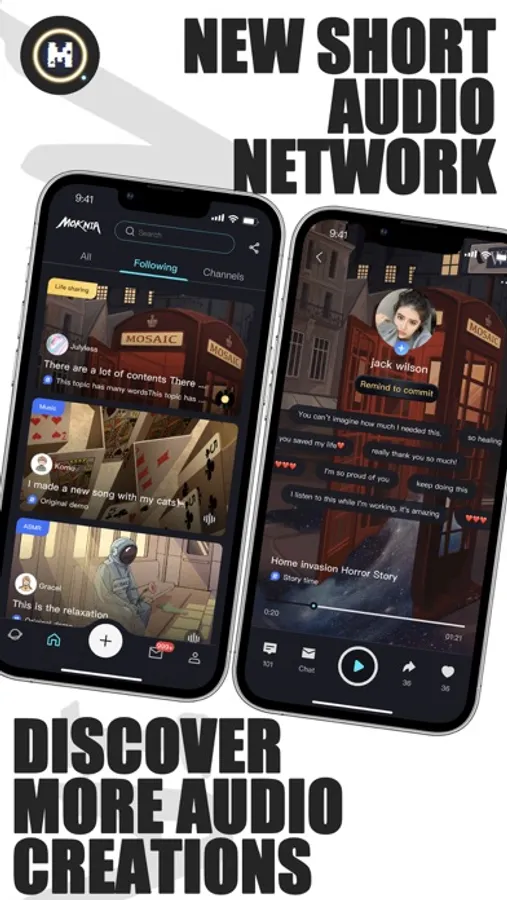 Moknia is a streaming short audio & music social platform that allows you to freely share content related to your life, thoughts, inspiration, creations, and artistic works.