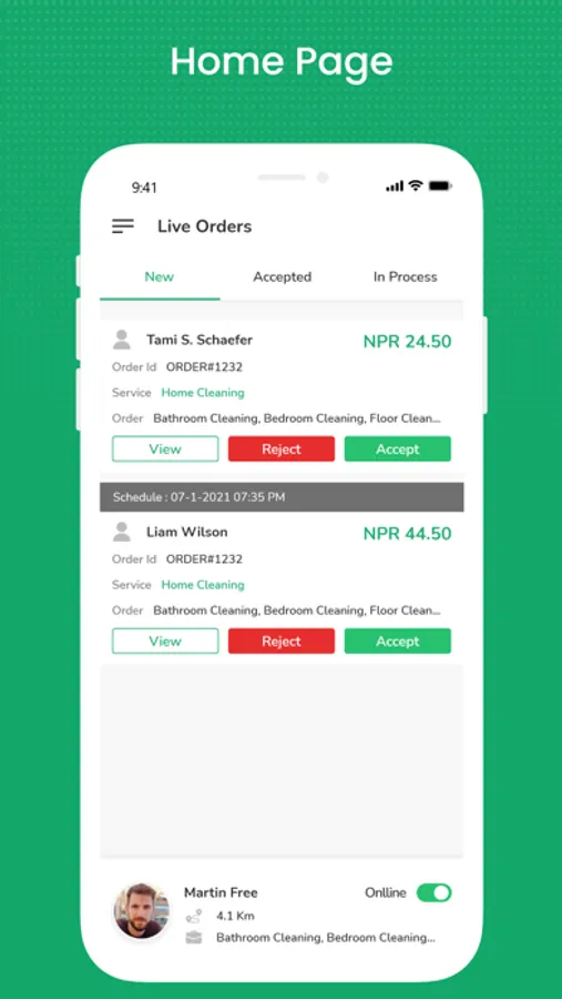 -Manage profile details such as name, email, contact, profile picture, and service radius