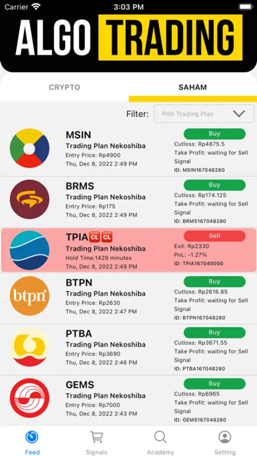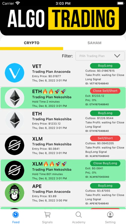 Trade Crypto coins using signals from AlgoTrading. Signals on AlgoTrading are programmed with special algorithms so that you don't have to follow signals from an influencers. We also provide videos for you to upgrade your trading skills and build your mindset since trading is also about mindset.