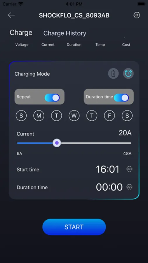 1、【Charge】Click and enter the optional charging interface. You can schedule the time and charging current.