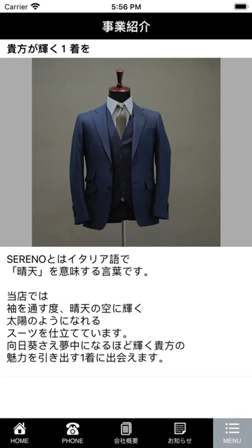 オーダースーツ専門店【SERENO tailor made-suit】の公式アプリ。