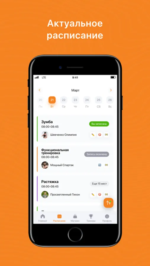 - посмотреть актуальное расписание тренировок;