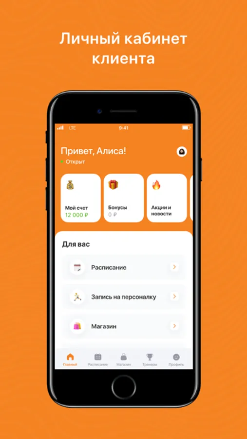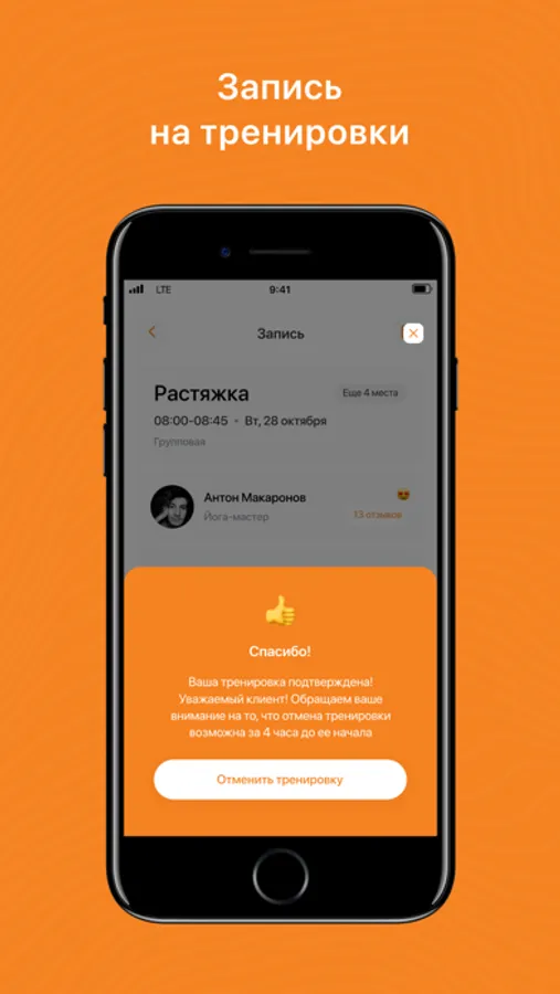 - получать PUSH-уведомления о предстоящих тренировках и акциях