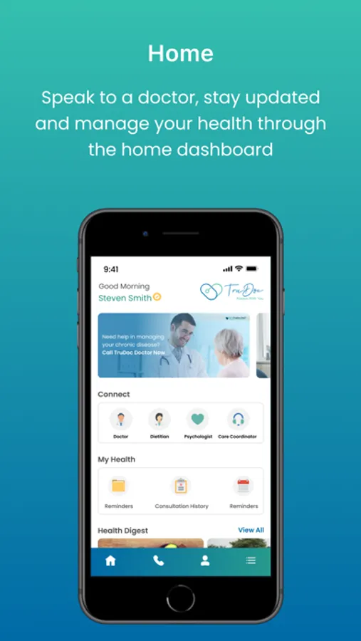 TruDoc offers a one-stop-care-destination for people who are healthy, acute, or chronic through different entry points including Integrated Mobile Application, Virtual Clinic, Hospital at Home Program and Hospitalist Program that are all connected to our 24x7 Doctor Call Center.
