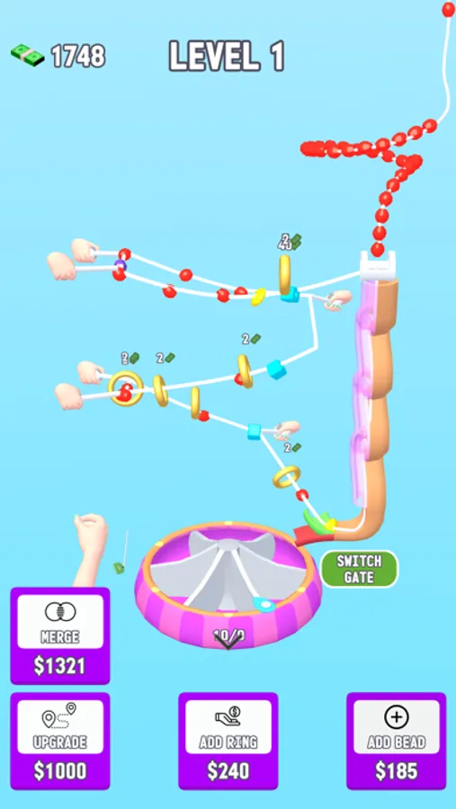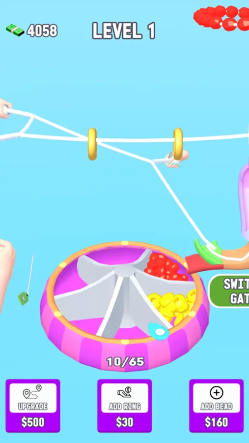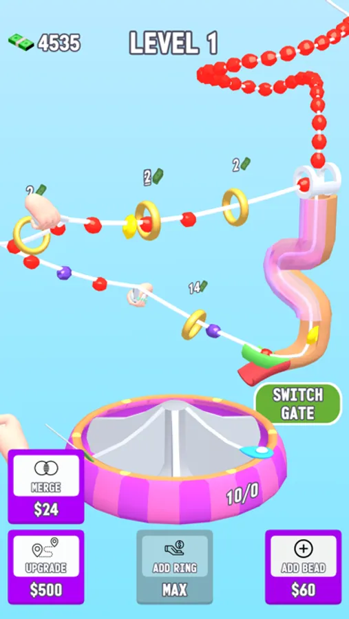 Create and merge colorful beads! Hang the beads on the string and earn money. Make bracelets and sell them to earn more money. More you earn, more you get different beads.