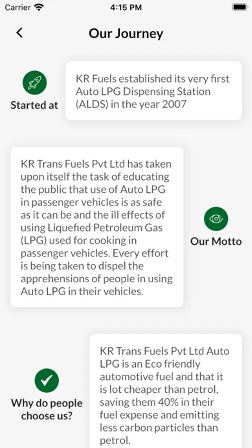 KR Trans Fuels Pvt. Ltd. has taken upon itself the task of educating the public that the use of Auto LPG in the passenger vehicles is as safe as it can be the adverse effects of using domestic LPG in passenger vehicles. As a part of this initiative, KR Trans Fuels Pvt. Ltd. has embarked on a drive to educate the public that auto LPG is an Eco friendly automotive fuel and comparatively cheaper than petrol.