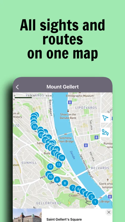 • Map with attractions available without internet. Download 1 time and enjoy your walk