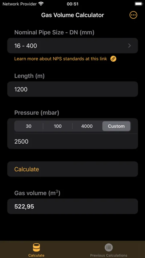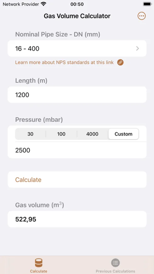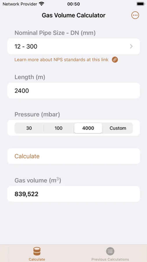A straightforward gas pipe volume calculator app that uses the NPS (Nominal Pipe Size) standard.