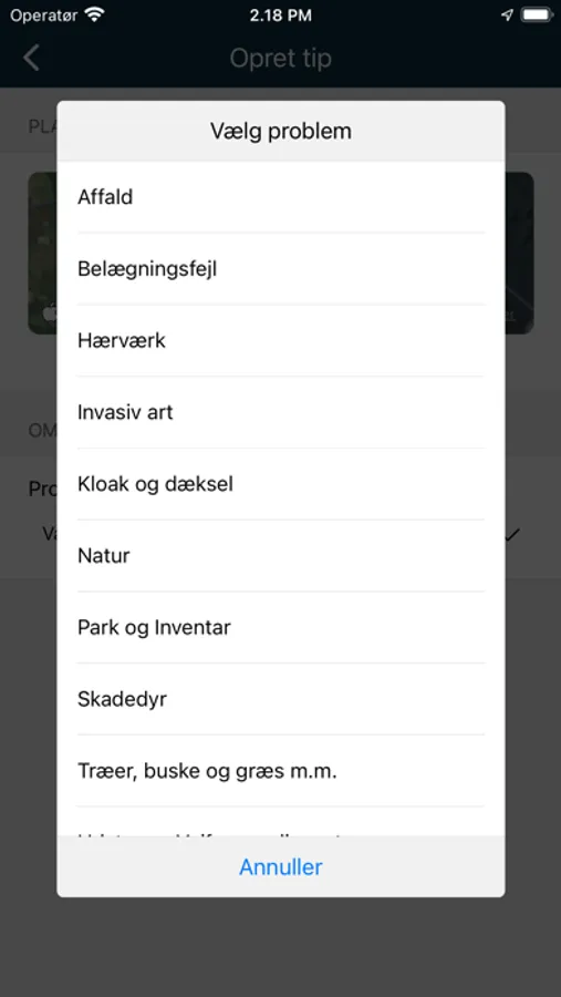 • Beskriv eventuelt problemet i tekstfeltet og tilføj billeder via kameraikonet, hvis det ønskes.