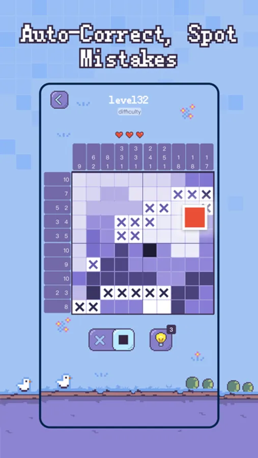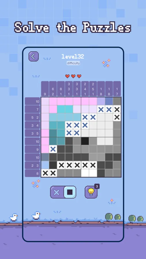 • Mark the square shouldn't be colored with an X to help you solve the puzzle.
