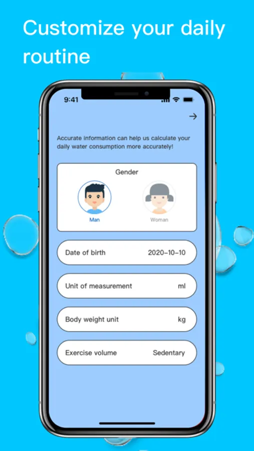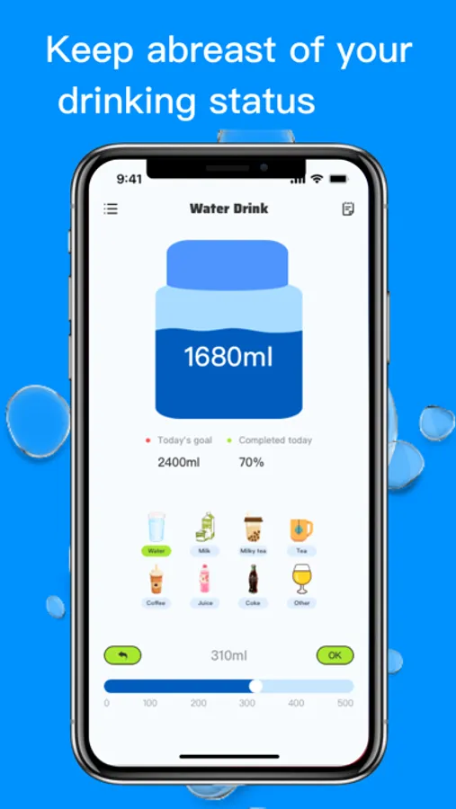 Water Drink reminder is an application, whose main function is to help us maintain the needed water supplement and timely drinking water reminder. The user only needs to select the gender and enter the weight figure, which will help you calculate how much water you should drink every day. You can also track the history of drinking water, achieve your daily goals, unlock your achievements, and many other useful functions... Drinking water reminders will help you develop healthy physical habits.