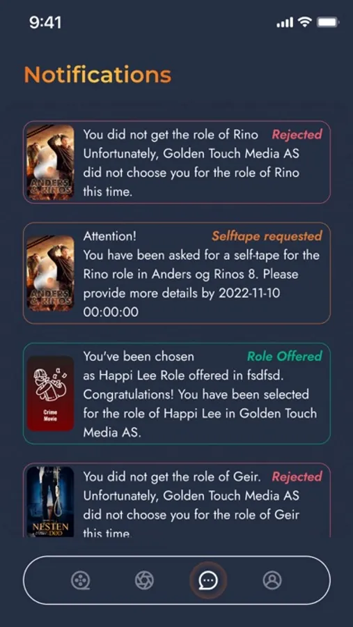Applying for roles has never been easier. Find a role, hit apply and automatically submit your prepopulated profile, including headshot, showreel, self-tape etc.