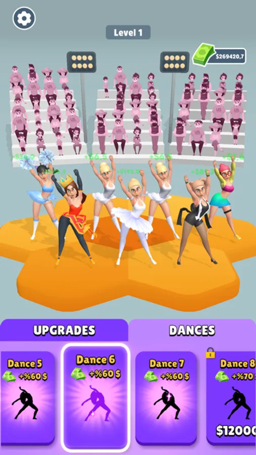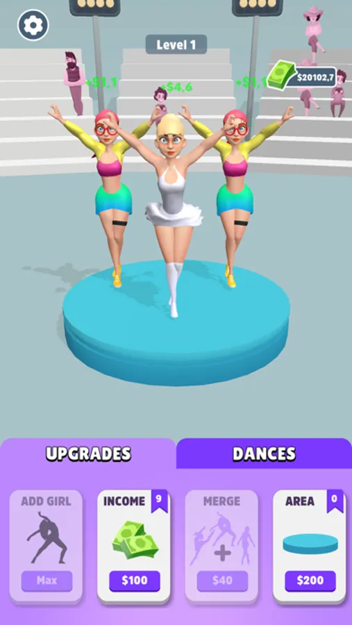 In this relaxing and fluid game, you can earn money faster just by touching the screen and improve the dance show with your management keys. Leave it at your table and enjoy the music, or step up the music and dance with the best dancers to create high-end dance performances.