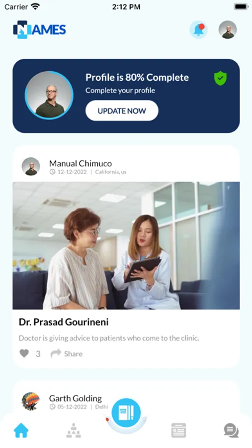 1. NAMES is a social media application for healthcare professionals and healthcare industry .
