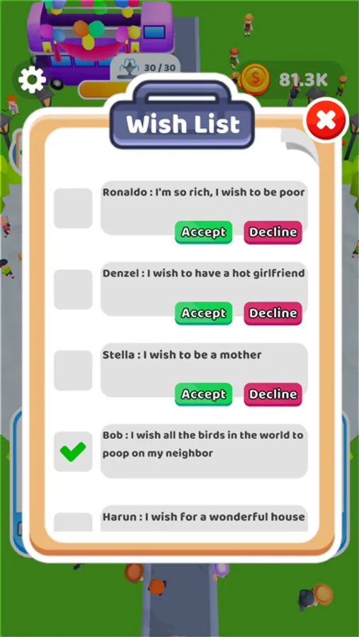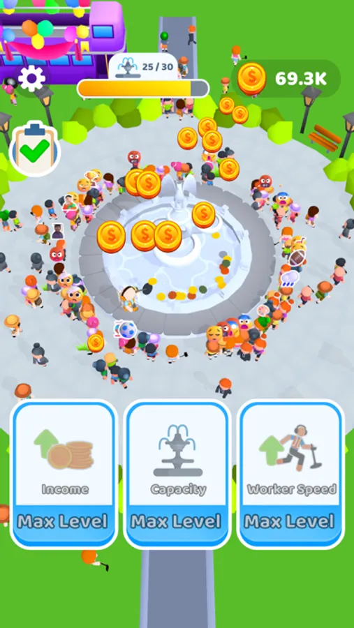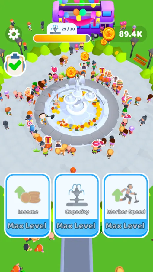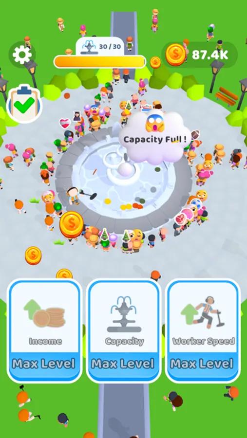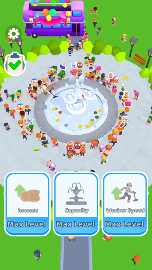 People stand around a Wish Fountain and take turns throwing coins into the fountain.If your coin in the fountain, you get to make a wish. Upgrade the fountain.Make the fountain larger or more ornate, to create a more impressive and inviting atmosphere.