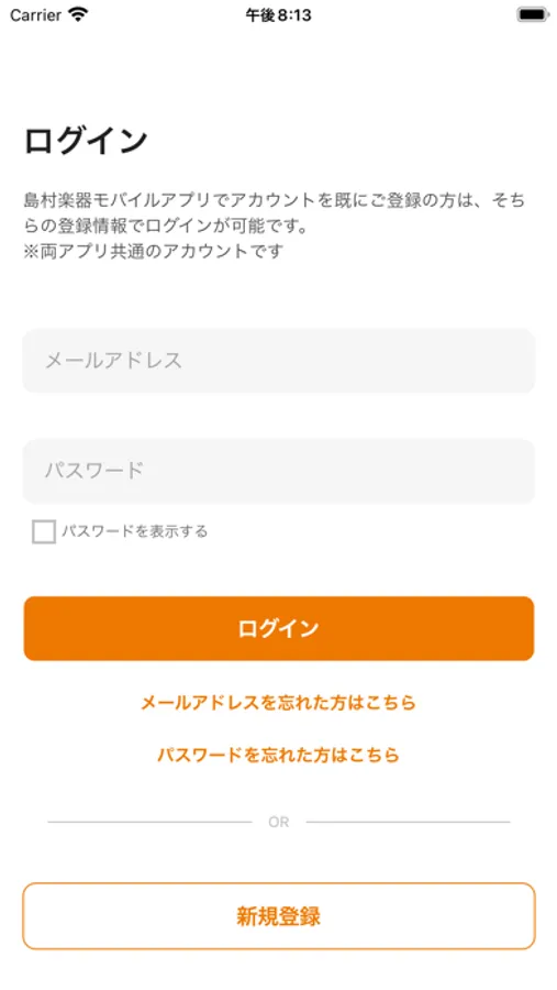 ※会員アカウントは「島村楽器モバイル」のアカウントと共通です。