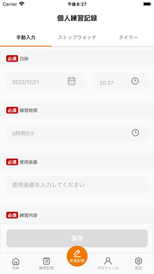 練習練習の記録や録音ができ、楽器上達の振り返りができます。