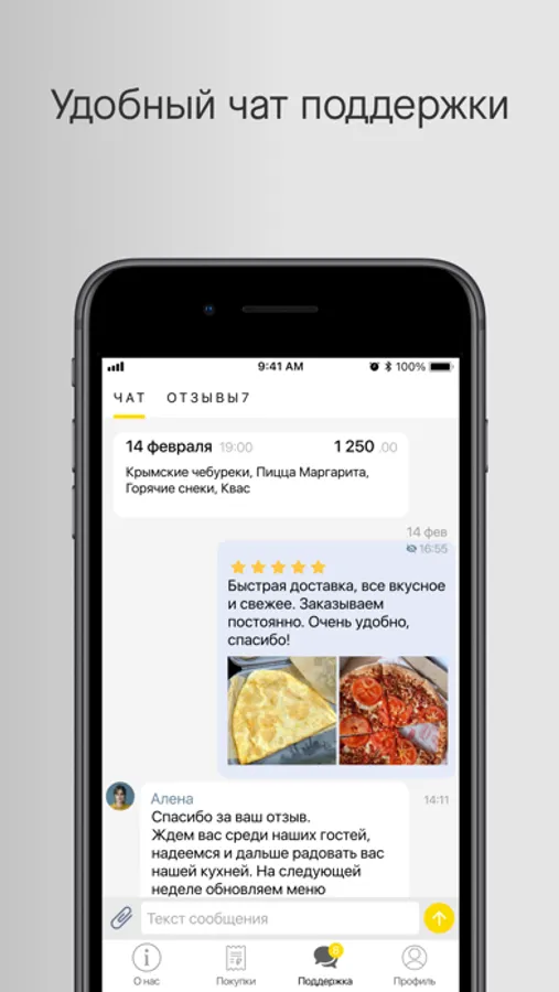 В нашем мобильном приложении вы можете заказать еду с доставкой в течение 50 минут, а также узнать новости и текущие акции нашего заведения.
