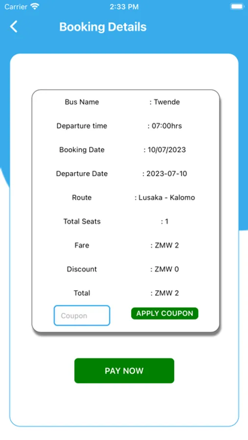 Cashless: With Twende you will have the chance of paying for your next ticket through any of the registered mobile money networks in Zambia.