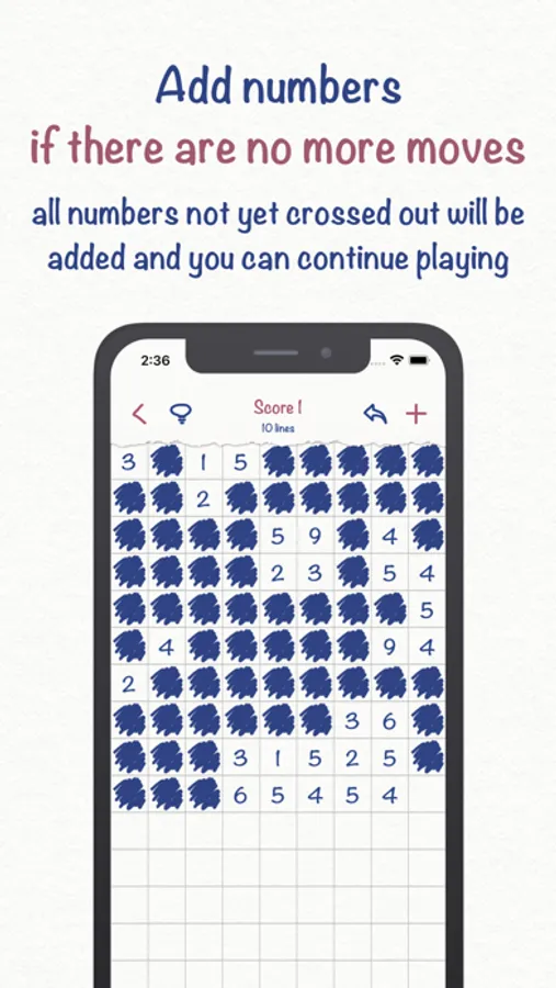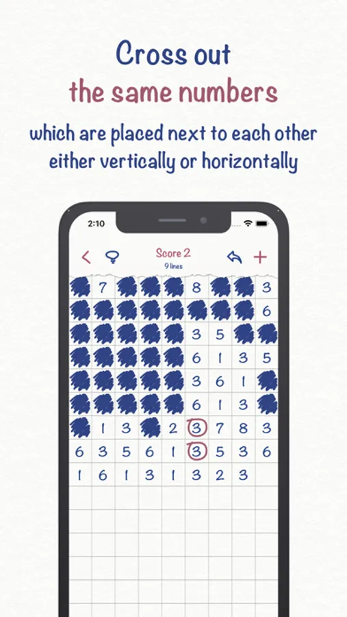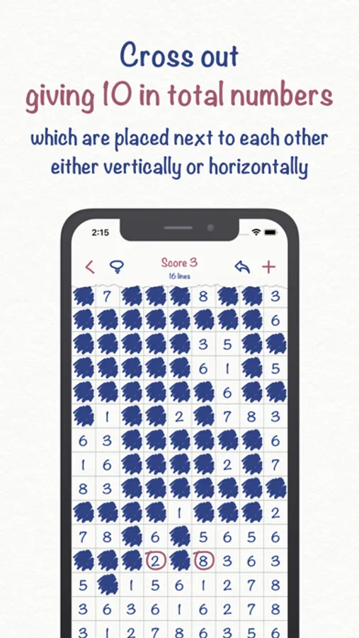 The goal of the game is to cross out all the numbers. Only the same numbers and giving 10 in total numbers, standing next to each other horizontally or vertically, can be crossed out. If you can't find the next move - hints will help. If there are no more moves - you need to add numbers and continue playing.