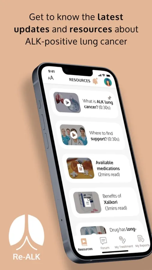 Re-ALK is created to improve the quality of ALK-rearranged Non-Small Cell Lung Cancer management through better practices and patients’ adherence. It is used to give scientific content for both doctors and patients. It also opens a forum of discussion for both patients and doctors. Patients can set reminders for their treatment and report adverse events on a regular basis. Doctors can receive adverse events reports from their patients and track them over time. They can also access decisional algorithms for different treatment lines.