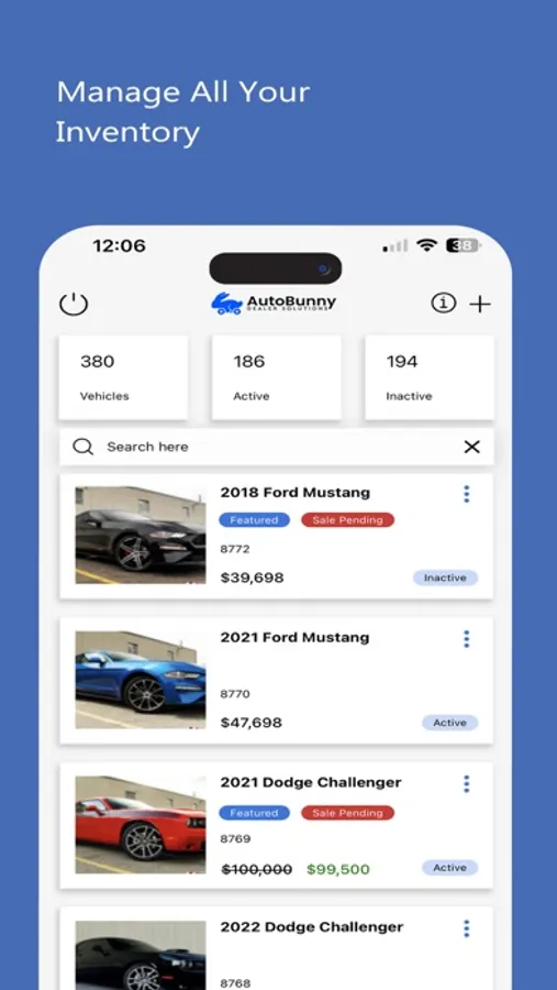 AutoBunny Dealer Solutions mobile application provide inventory management solution. Selected users can add, update and delete their vehicle inventory from their mobile device. The inventory management solution provided by the mobile application allows users to easily keep track of their vehicle inventory, making it easier to manage and maintain.