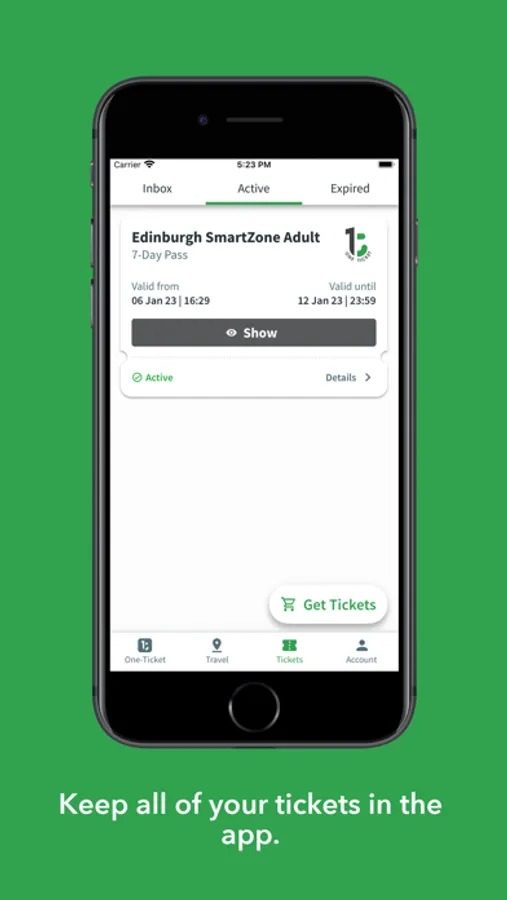 The One-Ticket app lets you purchase and use bus (+ tram) tickets instantly on your phone. Features include:
