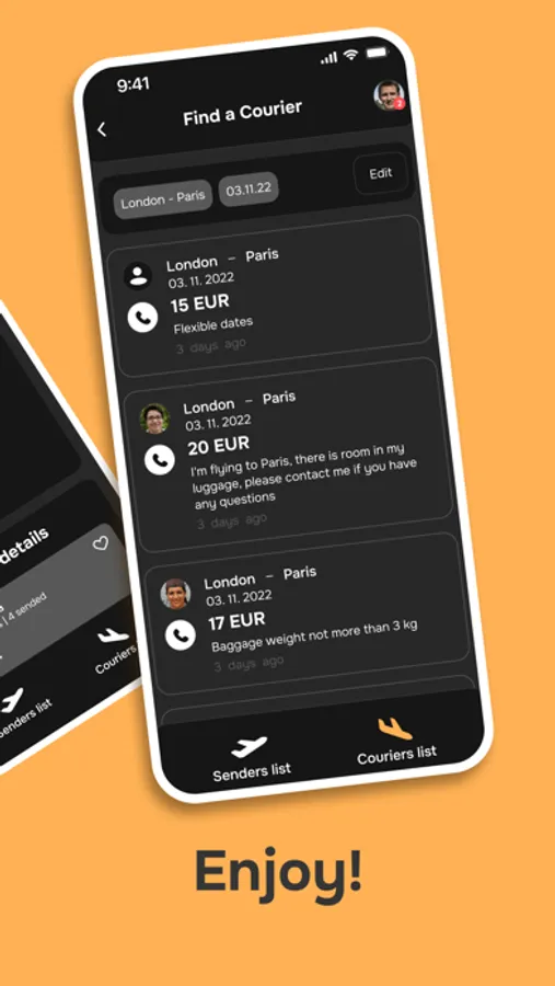 Then our app is just for you! What if we tell you that you can find the person who is flying to where you want to deliver the package today?