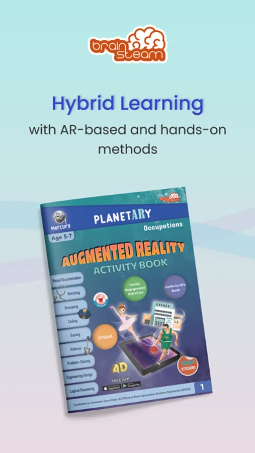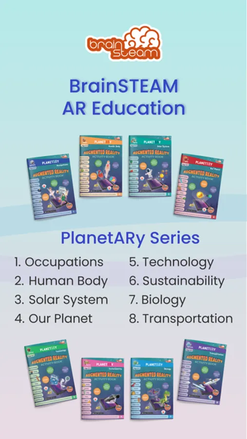 Kids learn better when they are engaged! BrainSTEAM AR Education app is 100% interactive, so your child will play, learn and practice various STEAM skills to improve academic and life skills. BrainSTEAM books and companion BrainSTEAM app is inspired by curiosity and focused on developing intellectual capabilities and rich perspectives of young readers.