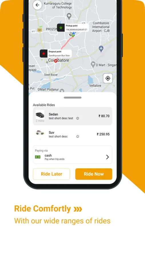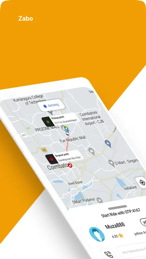 By pointing your preferred point of pickup location, destination and time, Zabo rapidly processes thousands of available options and picks the one that best suits you. User also can have a choice of choosing the vehicle types while booking.