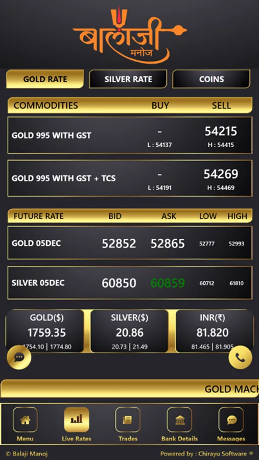 Our app shows the fastest updated LIVE RATES of gold.