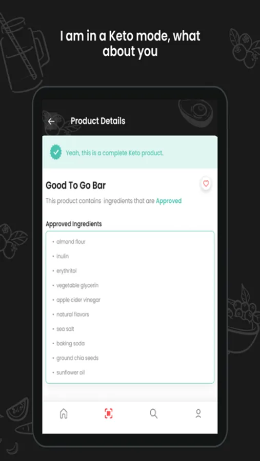 If the product does not have a bar code, you can enter the product name and ingredients and the app will tell you if it’s keto.