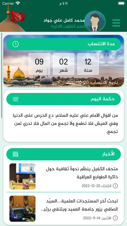 يوفر للمنتسب في المؤسسة الاطلاع على معلوماته الشخصية و معلومات انتسابه و رصيد اجازاته و كتب الشكر و العقوبات و التبليغات الهامة و اخبار و إعلانات المؤسسة و مسؤوليات و حقوق المنتسب و الكثير من المميزات الاخرى