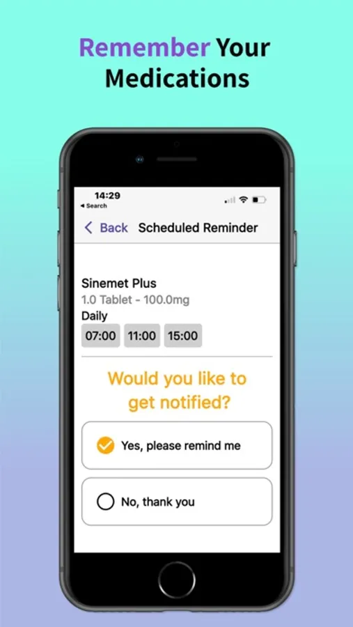 - Add your medication into your medication cabinet, add a note as to whether you need to take with or without food and you can include picture of its label.