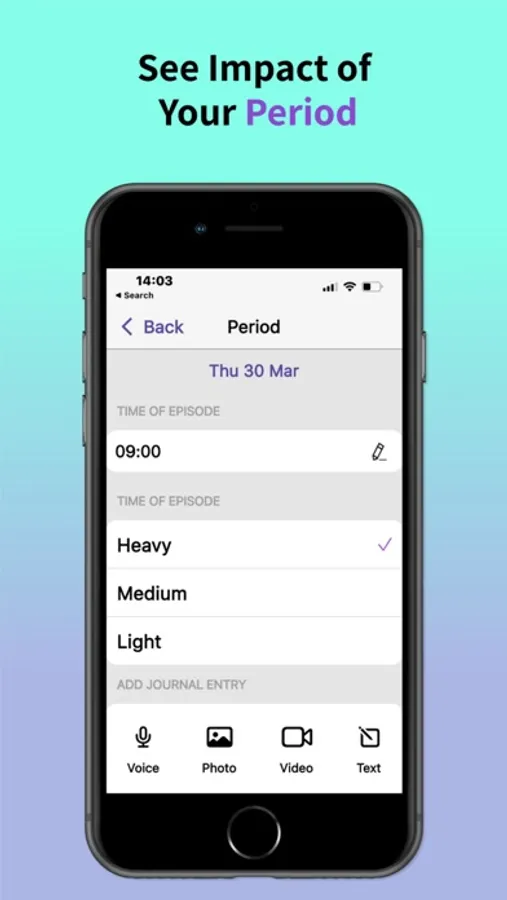 - Use your journal to track more detail using text, video, voice or images to paint a picture of your good and bad days.