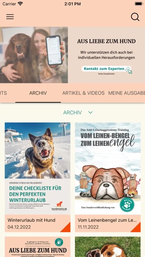 Da wir wissen, wie unterschiedlich die Bedürfnisse eines jeden Hundehalters sind, kannst du in deiner neuen Aus Liebe zum Hund-App deine persönliche Bibliothek erstellen und Inhalte komfortabel mit deinen Hundefreunden teilen.