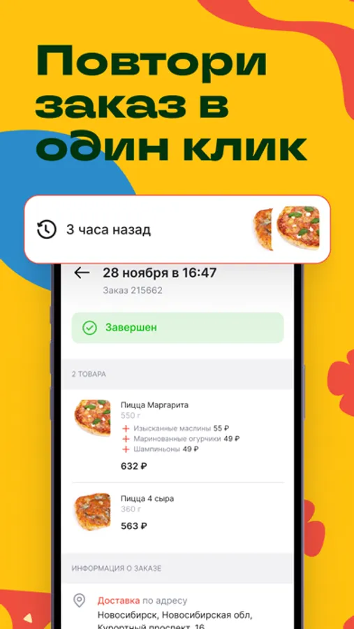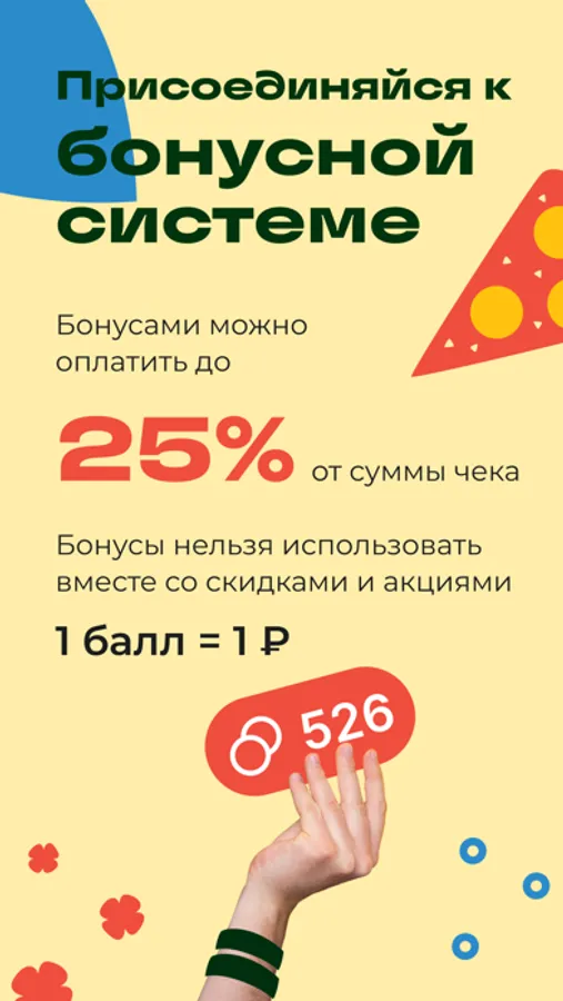 Установи приложение и будь в курсе самых горячих новостей и выгодных акций, получай персональные предложения и скидки. Всем именинникам в подарок –любая пицца на выбор при заказе от 800 руб.