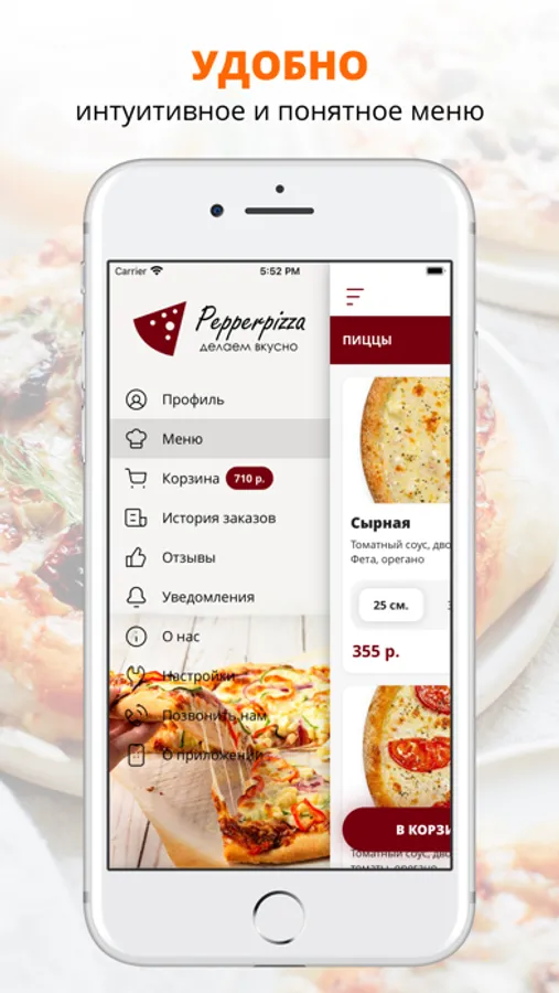 Воспользуйтесь удобным приложением для заказа еды «Pepper Pizza».