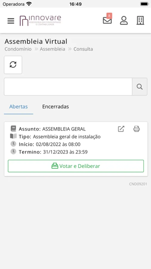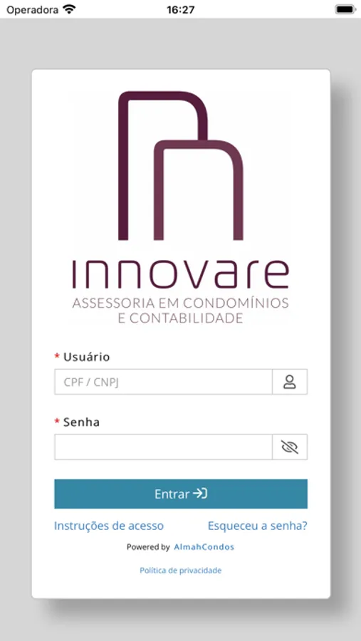 Este aplicativo é exclusivo para usuários da Innovare Condomínios.