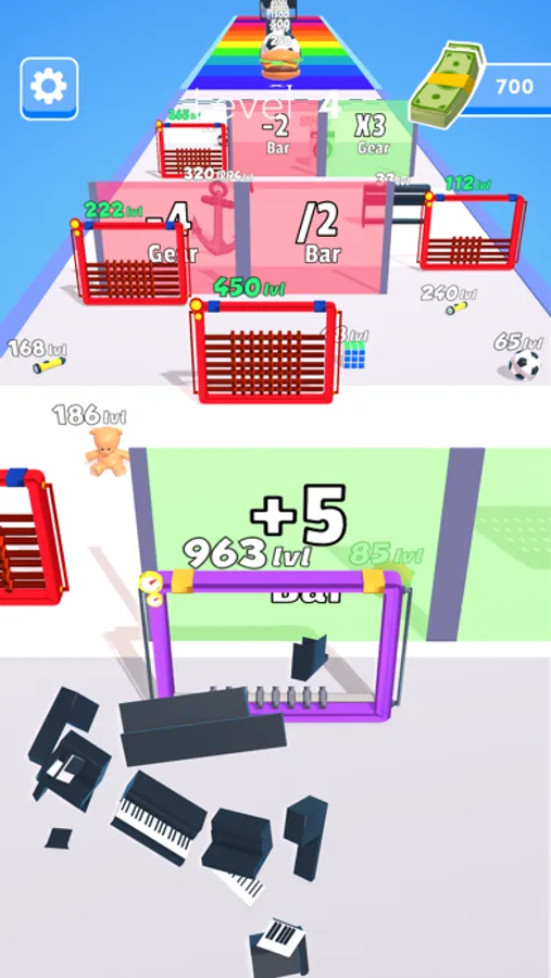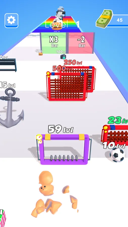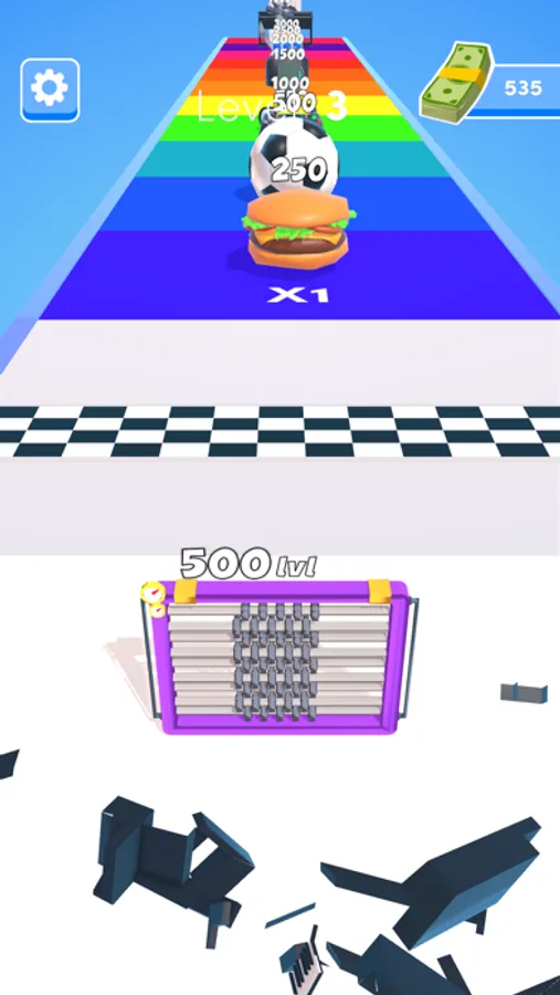 Shred the obstacles on the road and level up. Upgrade your shredder by passing through the gates.