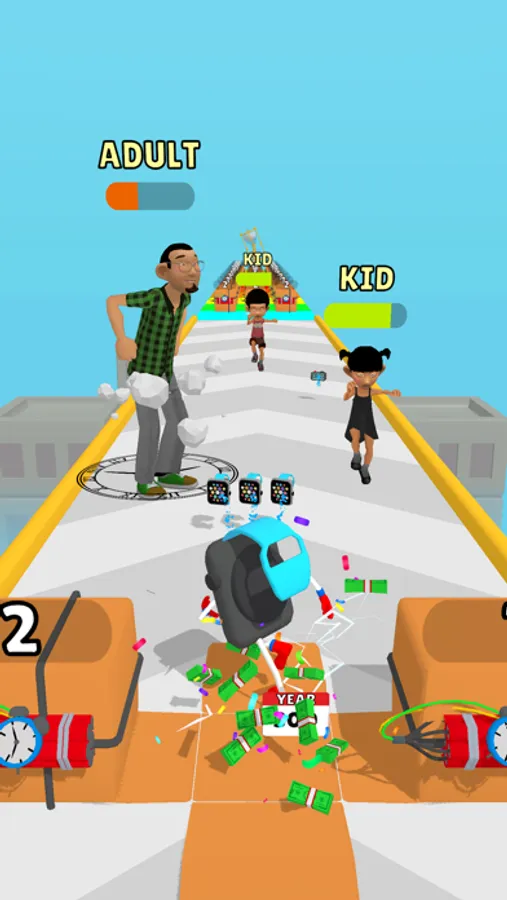 If you shoot people with your clocks, they will disappear in time. But if you don't time it well, it will get you eliminated. If you keep throwing clocks, people become kid, young, adult, senior, and then they disappear. It's that easy!