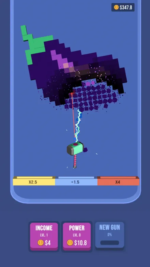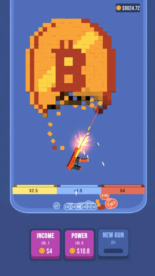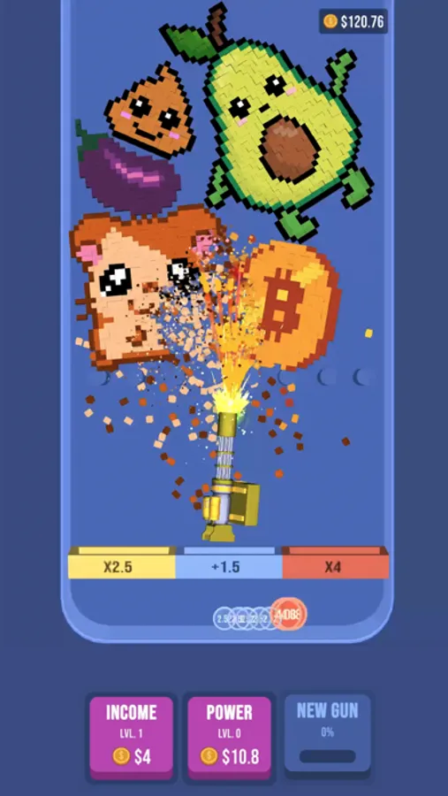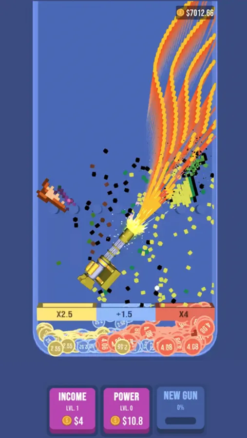 Choose your guns, aim and tap on pixel art blocks to demolish them. Grind all the falling pixels and collect gold coins to upgrade your guns and win!