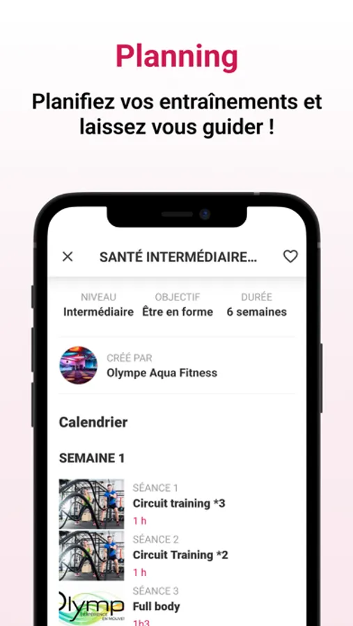 Retrouver la forme, créer sa routine sportive, perdre du ventre, travailler son cardio, faire du renforcement musculaire, se mettre au sport, se sentir bien dans son corps, pour tous ces objectifs. Olympe vous accompagne au travers de programmes d’entraînements variés, que vous pouvez effectuer chez vous, en extérieur, à la salle, avec du matériel et au poids de corps.