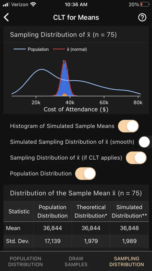Visualize how the sampling distribution builds, step-by-step. Explore the effect on the sampling distribution as you increase the sample size. Overlay the normal distribution.