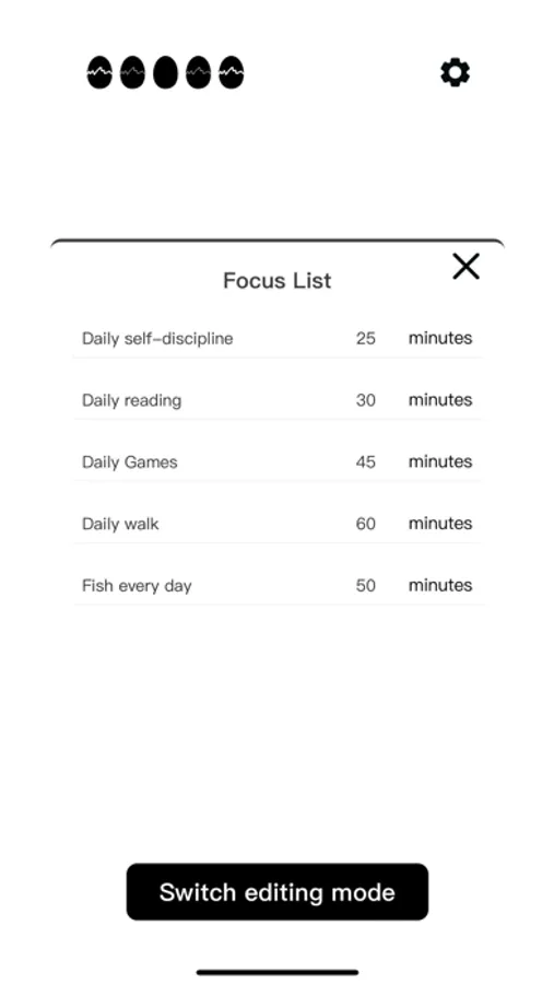 Egg focus is a tomato clock app that can incubate eggs to help you develop self-discipline habits. It integrates tomato working methods with interesting egg incubating games, splits the focus time into multiple 25 minutes, 35 minutes, and 45 minutes, flexibly splits your focus time. As long as you complete a focus plan, you can successfully incubate an egg. With interesting egg incubating animation and white noise, the process of cultivating self-discipline is no longer so boring, The application provides detailed data analysis reports, analyzes your incubation data, focuses on time, and urges you to get used to the tomato work method.